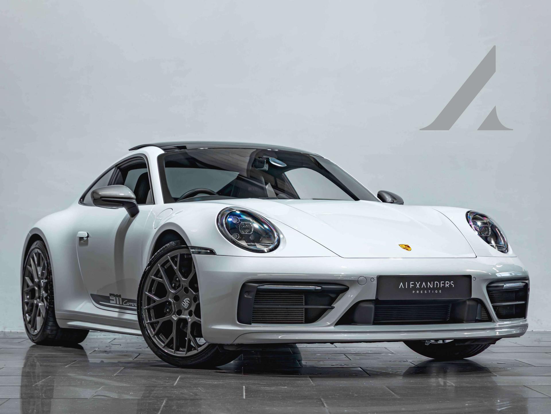 Finished in Shades Ice Grey Metallic paintwork with the Black Sport-Tex Cloth and Leather Carrera T Interior Package with Lizard Green Stitching, this Porsche 911 Carrera T PDK (992) is offered in immaculate condition, having covered just 4,400 miles from new. This 911 has a high specification with over £18,000 in optional features, including a slide and tilt sunroof, the SportDesign package, RS Spyder Design alloy wheels, Rear Axle Steering, and much more. The car also comes complete with full Porsche service history and the remainder of the Porsche warranty until May 2027.
