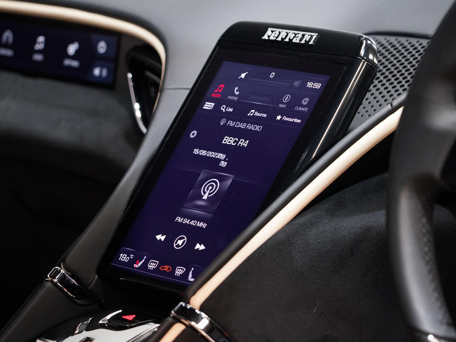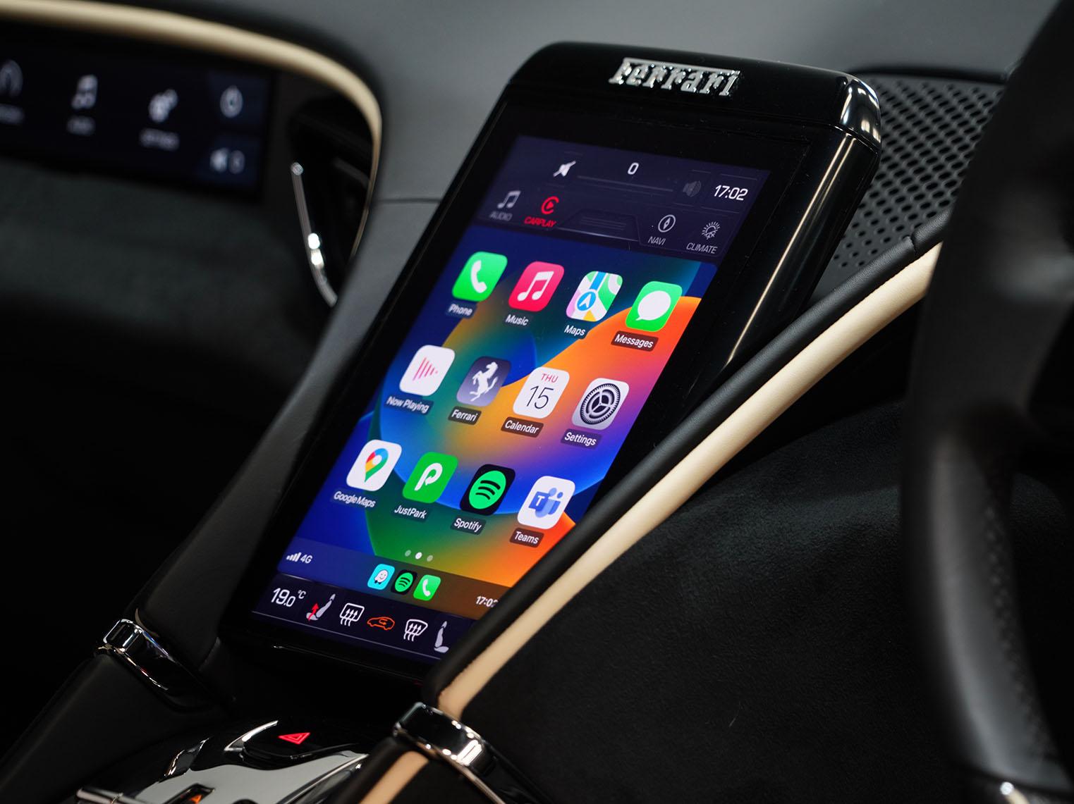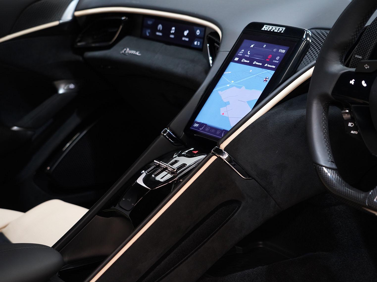 Inside, the dual-cockpit cabin layout separates driver and passenger zones, integrating curved digital displays, haptic controls and premium leather upholstery to create a contemporary, driver-focused environment. The Roma ultimately represents a modern interpretation of classic front-engined Ferrari GT philosophy, combining everyday usability, sophisticated technology and high-performance capability in a distinctly elegant package.